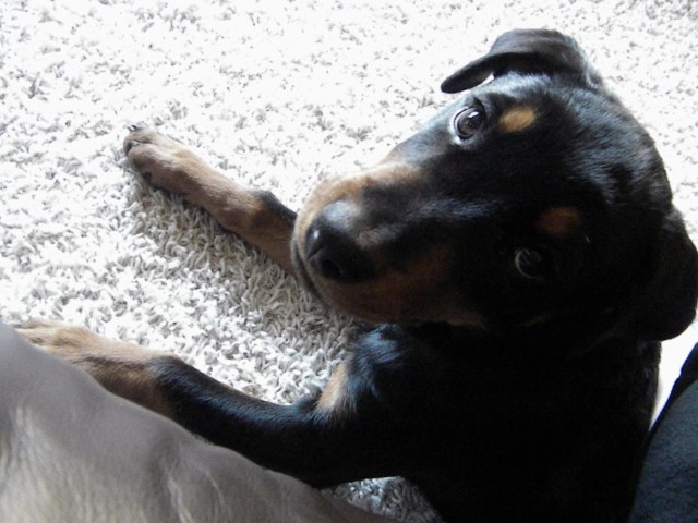 Well, she looks like she’s about to hunt me down, but I like this picture, even though the grass looks fake..? She’s a good model sometimes though, I give her credit on that. Ohhh, puppies.