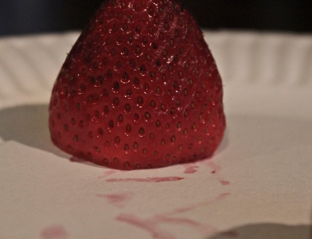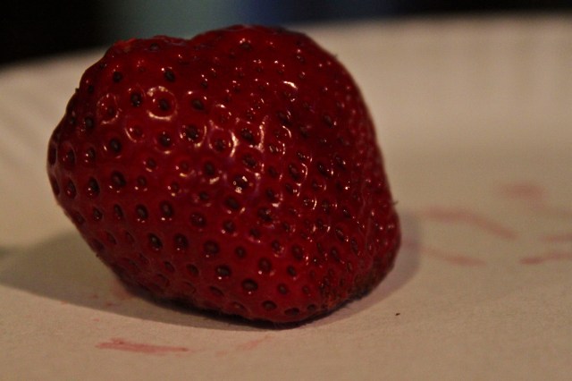 BOOM! taking pictures of strawberries.