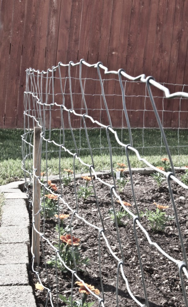 My leading lines picture was the last one that I took, and It was really easy. You see lines everywhere, and anywhere. There’s a lot of lines in this photo, so I thought it fit perfect. My mom just planted new veggies and flowers in one of her eleven gardens, and my dog Kahlua- a 90 pound Rottweiler- doesn’t know to not go in the garden. So we had to put up a little wire fence around it to keep her out! The lines lead in all different directions but the focus for this picture is definitely on the wire fence.