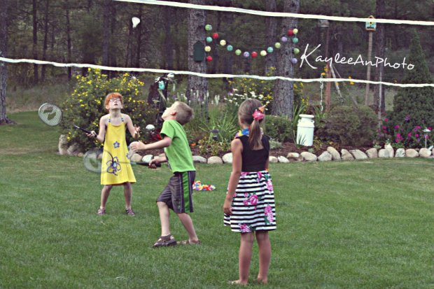 kids playing badminton.