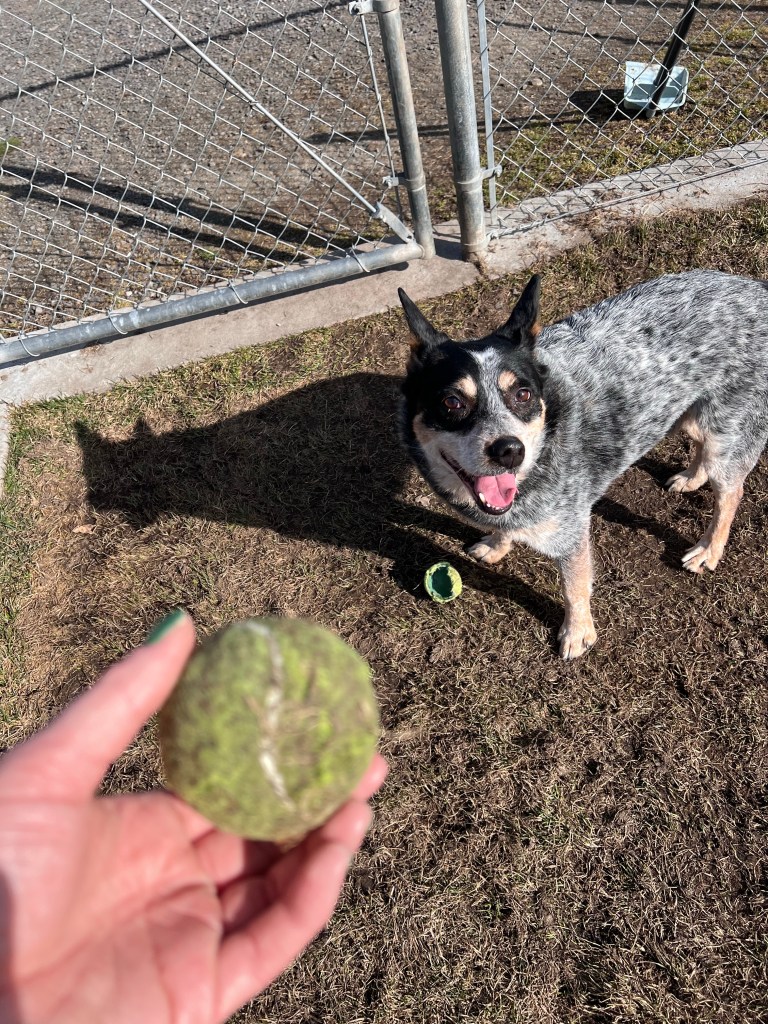 So i tell Stefan, there’s one blue heeler at SCRAPS. I’m going to go meet him. He says okay sounds great. I show up, i find his kennel pretty quickly, but he’s already barking. So i walked around the dog kennels for probably 15-20 minutes before he finally calmed down enough, and for someone to come help me get him out after asking as they were so busy.
